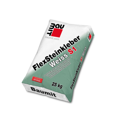 Pulverförmiger, weißer, zementärer, hochflexibler Mittelbettkleber, für die Verlegung von Platten gem. RVS, Fliesen, Steingut, Feinsteinzeug sowie verfärbungsempfindlichen Natursteinen bzw. bei der Verarbeitung von Baumit GalaDrain zum kraftschlüssigen Verkleben (maximale Schichtdicke: 20 mm). Entspricht EN 12004 (C2 TE S1) und RVS 08.18.01.