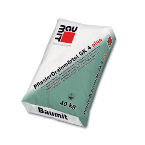Durch das Spezialbindemittel ist Baumit PflasterDrainmörtel GK4 plus kalkausblühungsreduziert, hochsulfatbeständig, spannungsarm festigkeitsentwickelnd, frostbeständig.