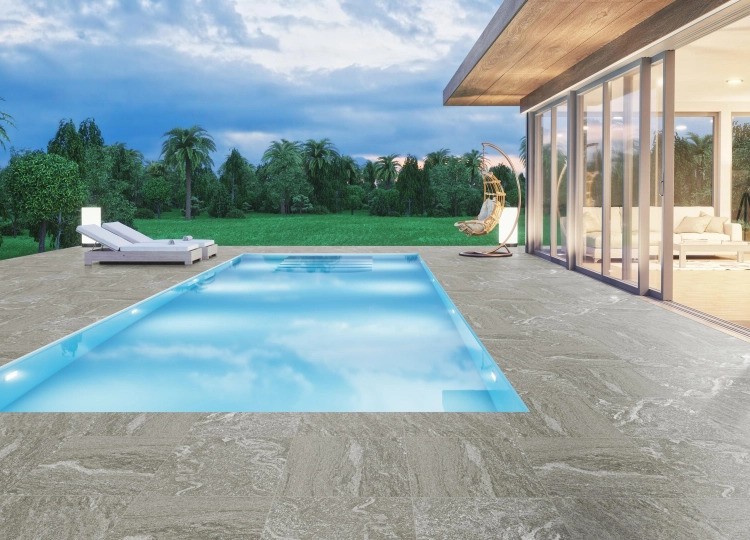 Die Fliese Arragos, die originalgetreu dem Material Naturstein nachempfunden ist. Dabei ist sie langlebig und eine praktischste Lösung für den Garten – im Sommer wie im Winter. Das ästhetische Muster der Fliesen unterstreicht ihre Natürlichkeit und bringt ein harmonisches Flair mit.