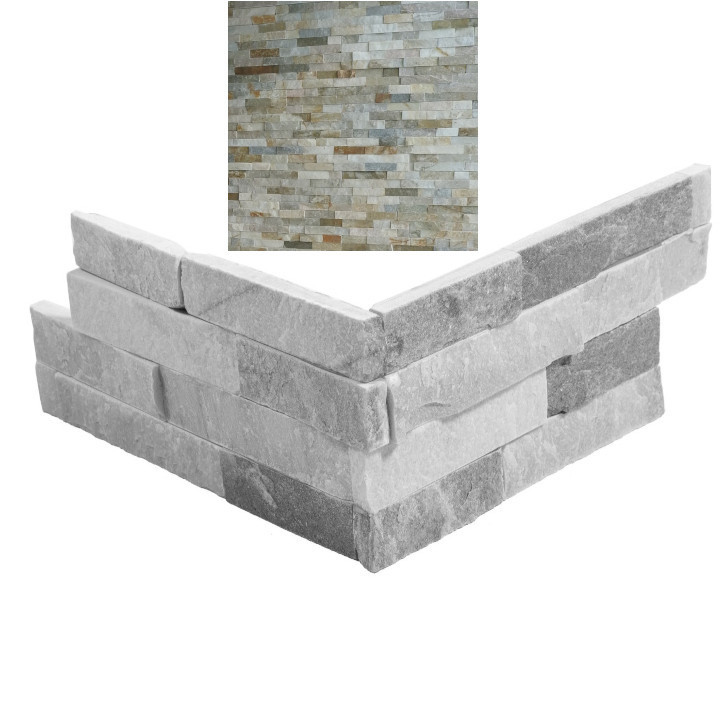 Eckstück – Quarzit Wand Verblender in der Farbe gelb-braun-grün gemischt.