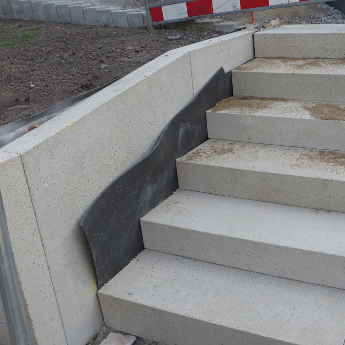 Trenn- und Schutzlage bei Pflasterflächen an den Gebäudesockel zum Schutz der Abdichtung und Dämmung (z.B. WDVS) nach ÖNORM B3692 und VAR 2019 für Wärmedämmverbundsysteme