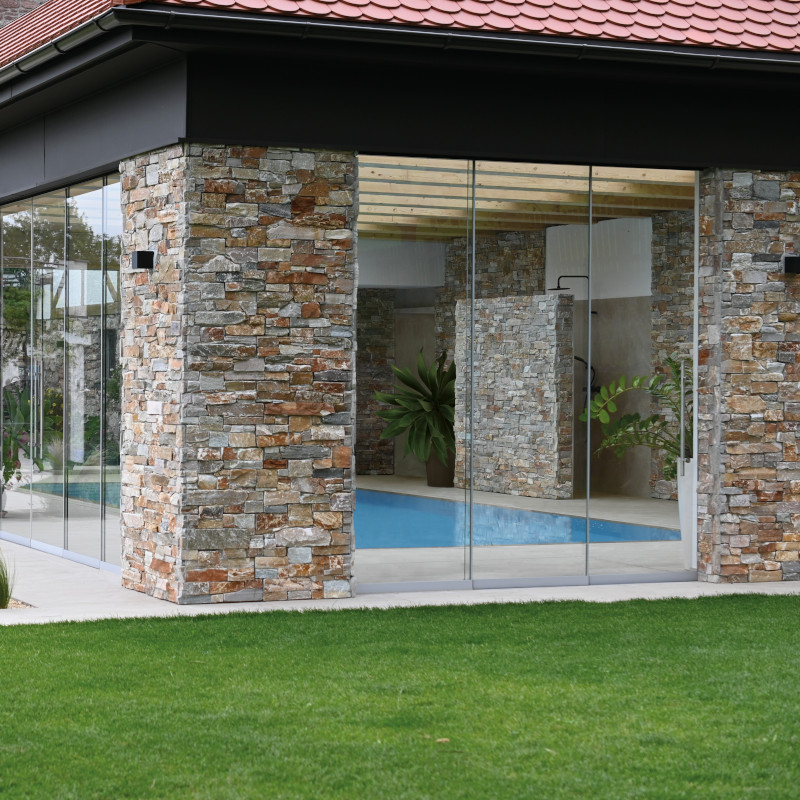 Die Befestigung erfolgt mit einen hochwertigen Natursteinkleber, der auf der Rückseite der Verblender angebracht wird. Eine anschließende Imprägnierung der Steinwand wird im Aussenbereich empfohlen.